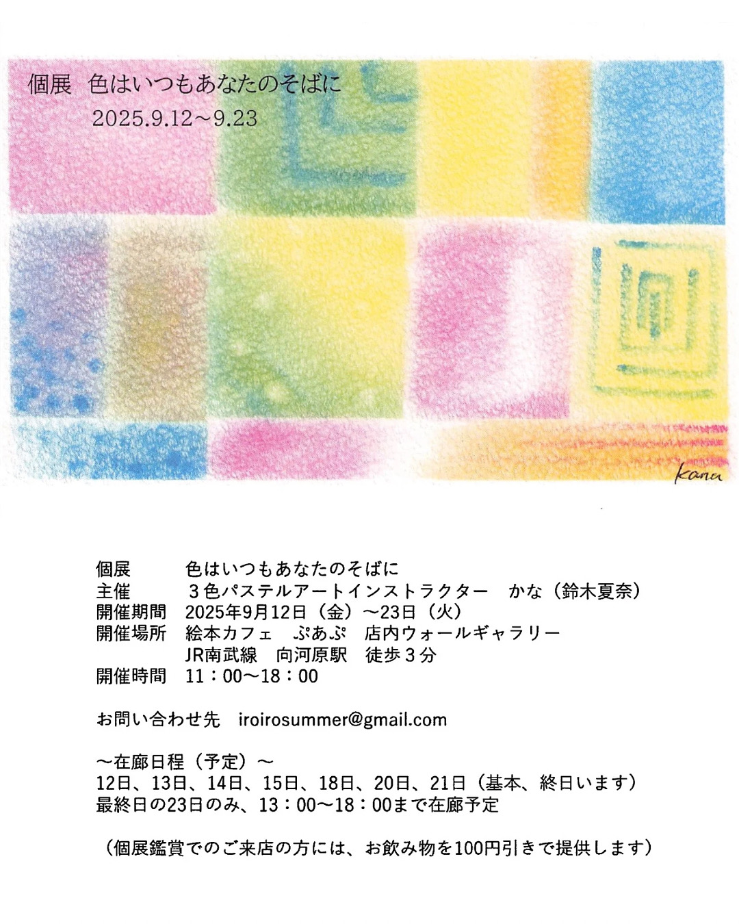 ・9/12(金)~ 9/23(火・祝)個展「色はいつもあなたのそばに」