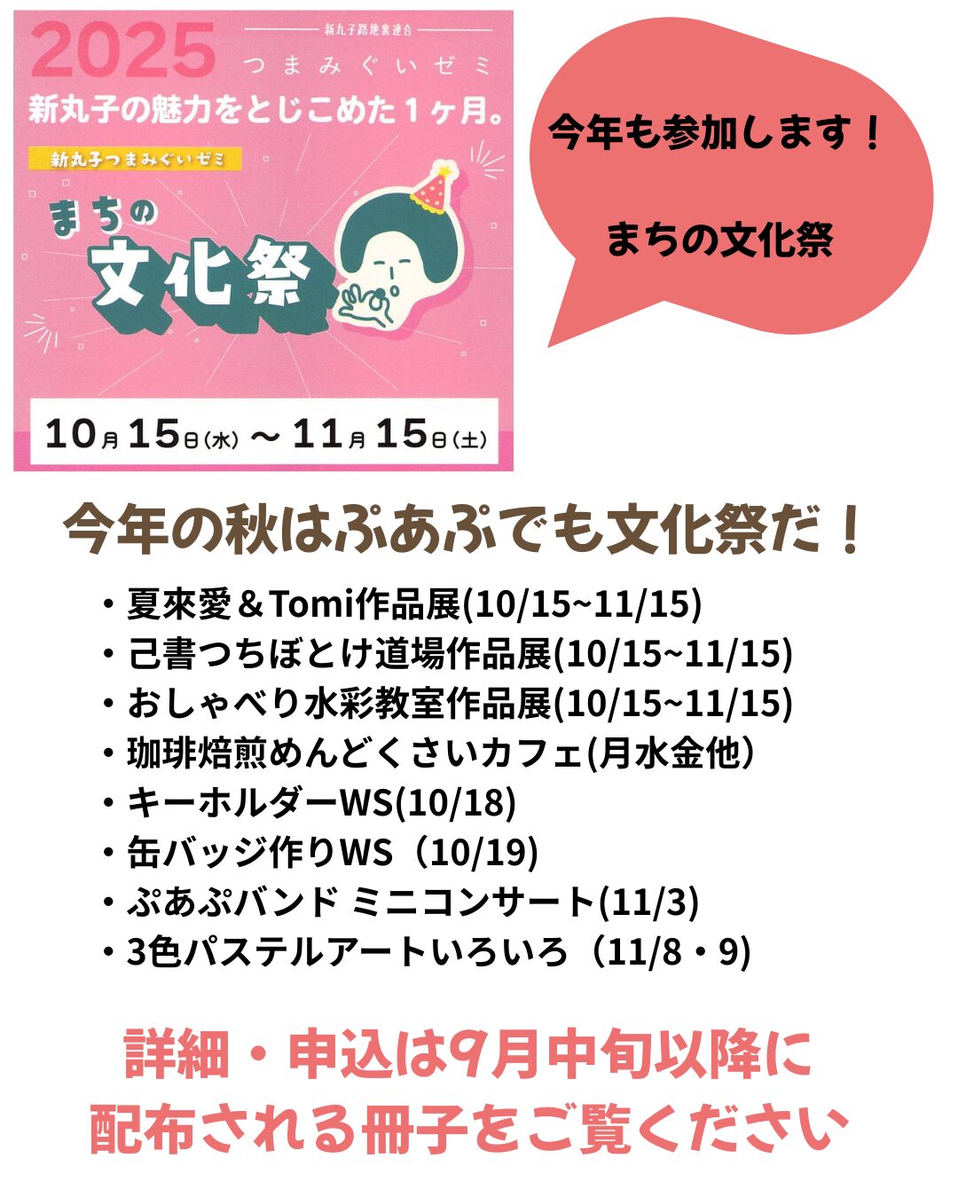 9/12~11/15 ぷあぷの文化祭、やります!